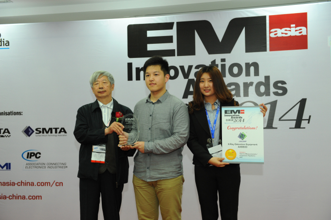 2014.4.24上海NEPCON展传来喜讯,ng28.com科技自主研发的国内首款集160KV高电压、1μm开放式微聚焦射线管及3D CT扫描等多种高端技术于一体的X射线检测仪AX8800获得2014EM ASIA年度“创新奖”,此次获奖已是ng28.com科技连续4年成功蝉联此大奖。此前ng28.com科技的微聚焦X射线检测设备AX7300、AX8200、AX8600凭借其高性能和客户的广泛认可,均获得该奖项的年度大奖。