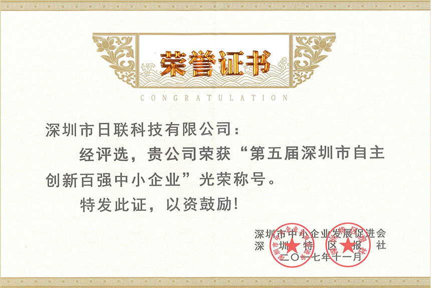 恭贺ng28.com科技荣获“第五届深圳市自主创新百强中小企业”荣誉称号