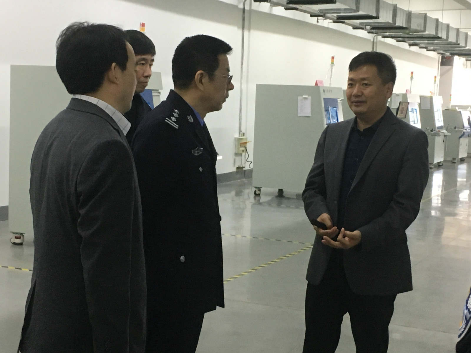 2019年3月15日上午,无锡市新吴区副区长、公安局新吴分局分局长丁旭东率队莅临ng28.com科技无锡总公司调研参观。ng28.com科技董事长刘骏博士全程陪同,带领大家参观了生产车间、实验室、展厅等,并就公司公共安全领域系列产品作了详细介绍。